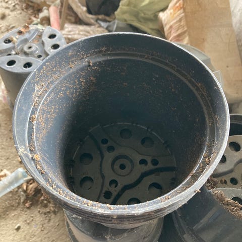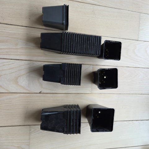 Sæt med plast potter i forskellige størrelser. Kommer med underskåle