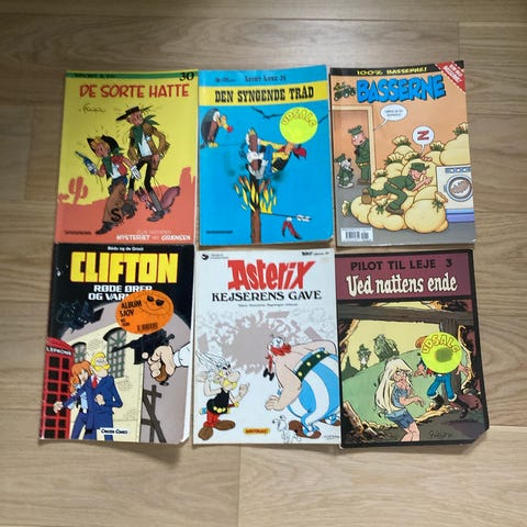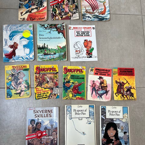 Blandet med bøger og tegneserier til børn og unge. Samlingen omfatter både illustrerede bøger, faktabøger og tegneserier i forskellige formater. Kom med et bud de skal bare væk, sælges både enkle og sammen