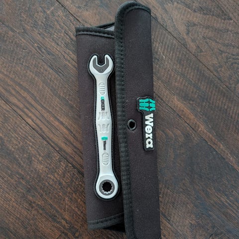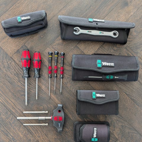 Wera skruetrækkersæt med etui. Sættet består af 12 præcisionsskruetrækkere med sort skaft og grønne markeringer, samlet i et sort sammenrulleligt etui med Wera-logo. Velegnet til mindre skrueopgaver og præcisionsarbejde, hvor der er behov for forskellige skruetrækkerstørrelser og -typer. Etuiet gør sættet nemt at opbevare og transportere.
