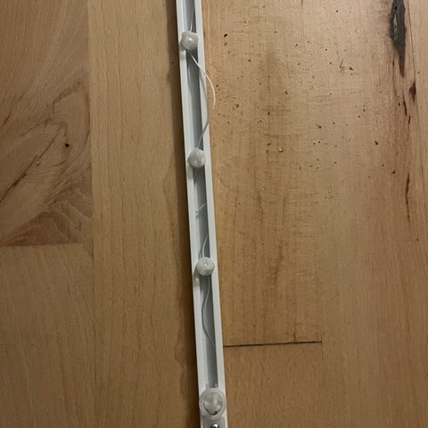 Sælger denne eksklusive gardinstang / gardinskinne. Skinnen er 4,5 meter lang. Der er 9 elementer af 0,5 meter der skubbes individuel i de 5 spor.