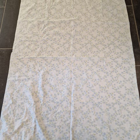 Retro dynebetræk i juniorstørrelse med det smukkeste blomsterprint i blå, hvid og lilla. Mål: 93x134cm. Lukkes med bændler.