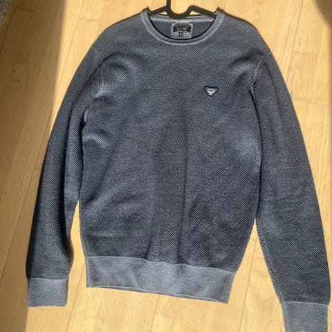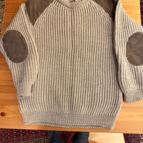 Ulden trøje, grovvævet i tråd, størrelse Large, mrk. J.M Hartmann, ren ny uld. Made in Great Britain