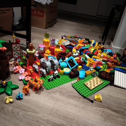 En stor plastkasse med 6,7 kg Blandet velholdt Lego Friends. Heraf 27 figurer og dyr, bil, fly, rutchebane, planter, huse og byggeplader. Til mange timers leg. Sælges samlet til fast pris + evt. Dao fragt.