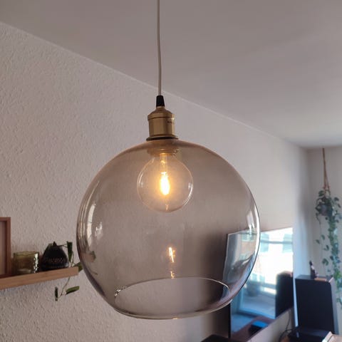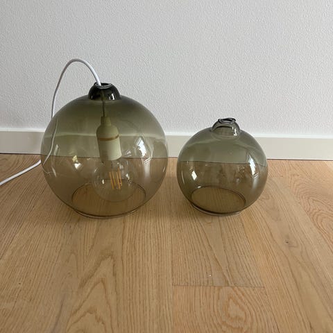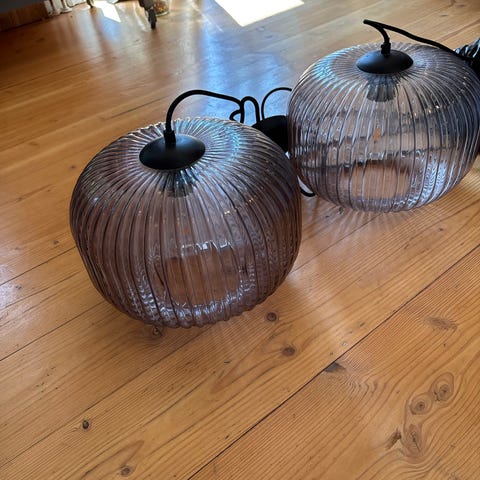 Sælger 2 JAKOBSBYN / JÄLLBY pendellamper fra IKEA. Skærmene er i mundblæst røgfarvet glas med messingfarvet ophæng, som giver et moderne og hyggeligt lys. Lamperne er i perfekt stand.