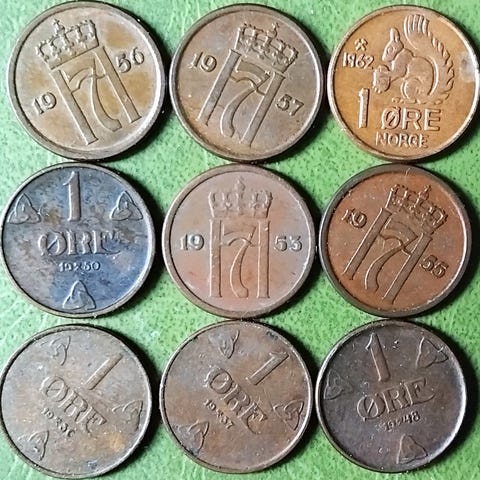 NORGE NORWAY 5 KR KRONE 1963, 1964, 1974, 1976, 1979 2 SLAGS! + 1 KR KRONE 1972, 1973, 1975, 1976 2 SLAGS! Prisen er for dem alle! Eller 5kr for 5 krone. Porto 25kr. Op til 100gram!
