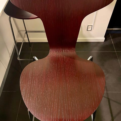 SH 77 cm. Fremstillede hos Howe. Nok nogle af de eneste spritnye Myggen barstole der findes på markedet