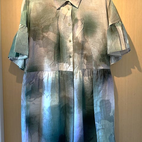 Fineste skjortekjole i mørk grøn fløjl, str 40, som ny