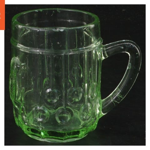 Vintage Grøn glaskrus med håndtag (str. Ø 5,5 cm længde 8 cm)