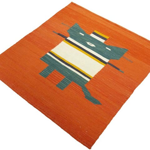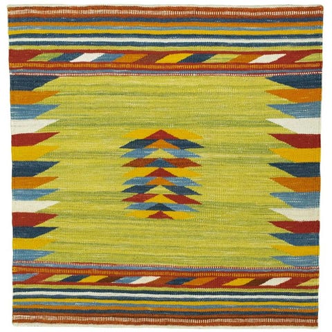 Håndvævet tyrkisk designer kilim i 21. århundrede, model Handgewebter Designer Kelim - Sammler Stück, uld på uld, mål 100 x 93 cm, professionelt rengjort og i meget god stand. Klik på den blå "gå til varen" knap, for at købe eller byde på denne vare. Den samlede pris vil blive vist inden du afgiver dit bud.