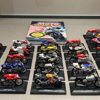 Assorteret samling modelbiler og motorcykler i hvidt metal og plastik, 63 dele, cirka 1990–2000, i god stand og uden originalemballage, inklusive en Yamaha YZR‑M1 kørt af Valentino Rossi. Klik på den blå "gå til varen" knap, for at købe eller byde på denne vare. Den samlede pris vil blive vist inden du afgiver dit bud.