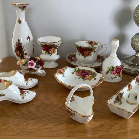 Pragtfuldt komplet Royal Albert kaffeservise, fremstillet af høj kvalitet engelsk Fine Bone China. Dette elegante servi se udstråler ren klasse og tidløs charme, perfekt for entusiaster af fint porcelæn. En unik mulighed for at tilføje et komplet og stilfuldt serviceto din samling!