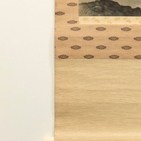 En kakejiku 掛け軸 (hængende rulle) der viser en scene fra The Tale of Genji 源氏物語 (Genji Monogatari).