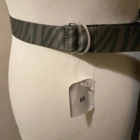 Bælte, Ring bælte, Urban Outfitters, str. One Size, Multi, Poly mix, Ubrugt, Mørkebrun og khaki beige unisex ring belt med hvidt Iets Frans logo