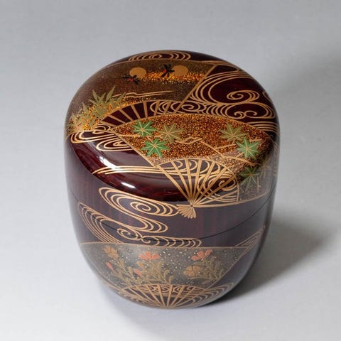 Ultra-luksus antik Jubako med fuld nashiji-lak og smukke gyldne kranier og fyrnåle-mønstre er fremstillet ved fremragende Maki-e-teknikker, skønheden skabt af disse tre enestående teknikker er åbenbar, og bringer en hidtil uset visuel fest til tilskueren.
