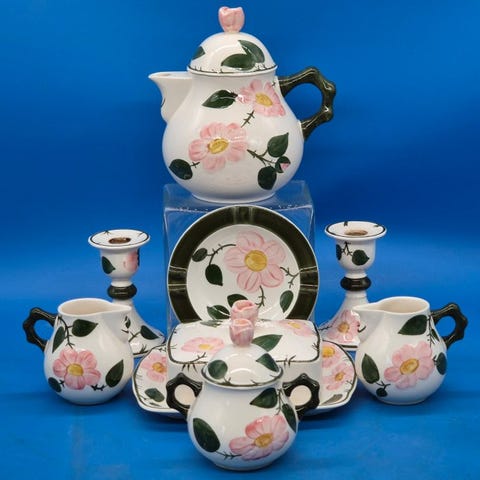 Smukt og komplet porcelæns-te-sæt fra den berømte tyske producent Villeroy & Boch, model “Wildrose”, produceret i Vesttyskland (V.-Tyskland).