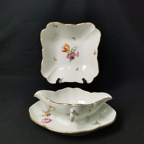 Et elegant og omfattende mellemkrigstidens middagsservice produceret af Königlich privilegierte Tettau (KPM Tettau), Bayern, Tyskland — en af de mest respekterede tyske porcelænsproducenter i slutningen af 1800-tallet og begyndelsen af 1900-tallet.