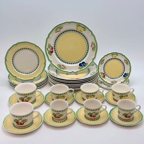 Tilbydes en spise-service fra Porcelænsfabrikken Villeroy & Boch fra den populære serie Petit Fleur med små blomster.