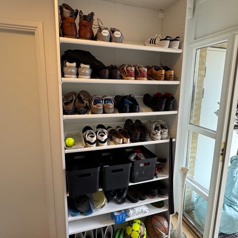 Sjovt item til ungdomsværelset- en sko reol til fx sneakers. Den er hvid, måler 30x190, og fra IKEA, fejler intet, ingen skrammer. Den kan selvfølgelig også bruges til noget andet.