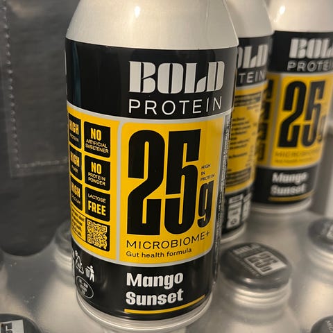 Protein Slim med enten Mango Tropical smag eller Cappuccino smag, hvor der kan kun er taget en gang fra hver beholder.