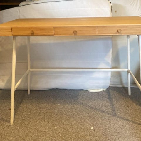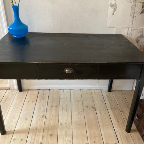 Sødt træ skrivebord med skuffe. Har fået nogle brugsspor efterhånden. Ved ikke om det kan fjernes. Se billeder for brugsspor.