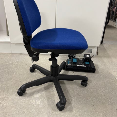 "Kontorstol. Mrk: DUBA B8. Sort. Polstret sæde og ryg. Alm. brugsspor. Evt øvrige effekter på fotos medfølger ikke."