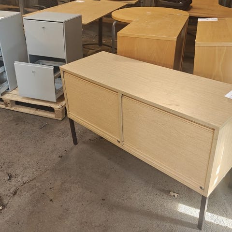 "2 Kantineborde og 1 rundt mødebord. Bordplader i massivt træ. Pulverlakerede stålstel. Mål: Kantineborde: 140 x 70 cm. H: 73 cm. Mødebord: Ø90 cm. Brugte med brugsspor. Evt. øvrige effekter på fotos medfølger ikke."