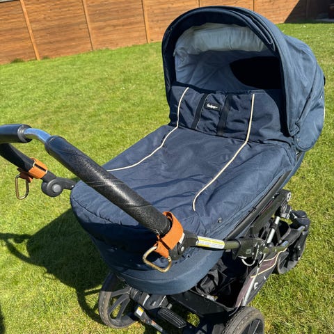 Med punkterfri hjul og sele regnslag fluenet madras sengetøj lift fra stork i blå farve alt er nyvaskede