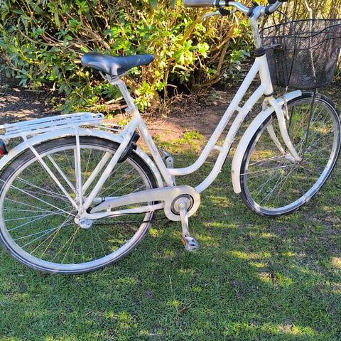 Mustang dame hybridcykel med 50 cm stel og 28" hjul. Cyklen er i cremefarvet stel med lav indstigning. Udstyret med drejegreb med 3 indvendige gear, forkurv, bagagebærer og kædeskærm. Sadel og håndtag er i brun farve. Velegnet som hverdags- og bycykel til kvinder/piger der ønsker en oprejst og komfortabel kørestilling.
