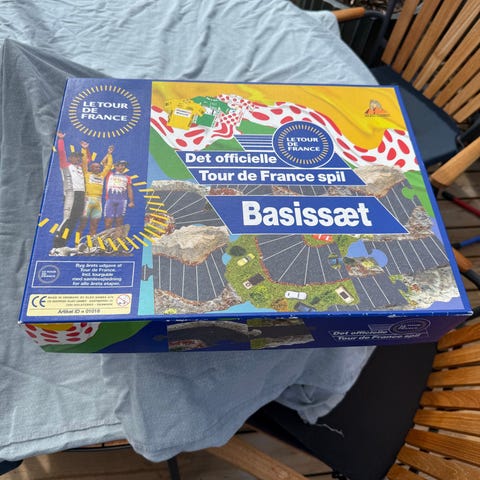 World Cycling Game brætspil. Spillet er et cykelløbsspil, hvor spillerne styrer cykelryttere på en bane. Sættet indeholder spilleplade, spillebrikker formet som cykelryttere, kort, markører og oversigtsskema. Egnet til bordspil for flere deltagere, hvor man simulerer cykelløb og taktiske beslutninger undervejs i løbet.