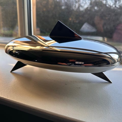Alessi skål i rustfrit stål. Skålen har udskåret mønster i siden og en glat bund med små fødder under. Egnet som frugtskål, brødskål eller dekorationsskål i køkken eller stue.