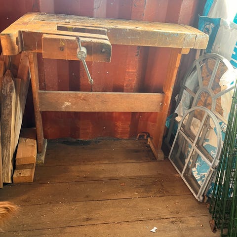 Høvlbænk fra tideliger møbelsnedkeri.