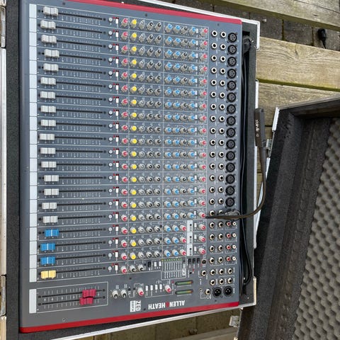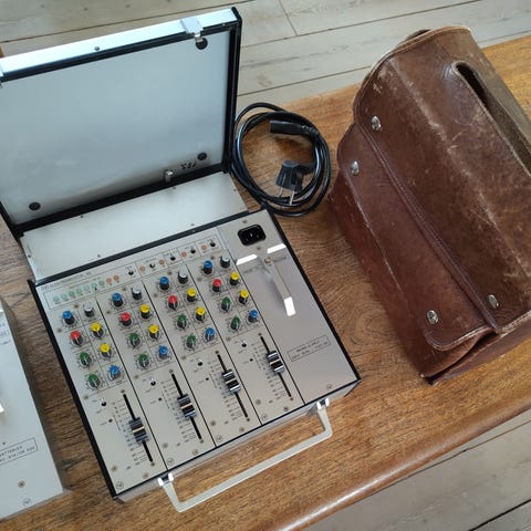 Fra øverste hylde, Amek BCll, ex TV2 (TV stationen) mixer, fuldstændig gennemrenoveret af TV2 tekniker. Perfekt til summing. 10 mono kanaler og 2 stereo. Ikke direct out, men mulighed for at trække kabler via insert Der medfølger en del ekstra kanaler + extender board etc.