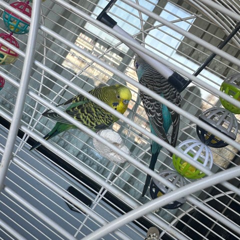 Jeg sælger disse 5 undulater da de har brug for et mere roligt hjem end hvad vi desværre kan tilbyde dem.