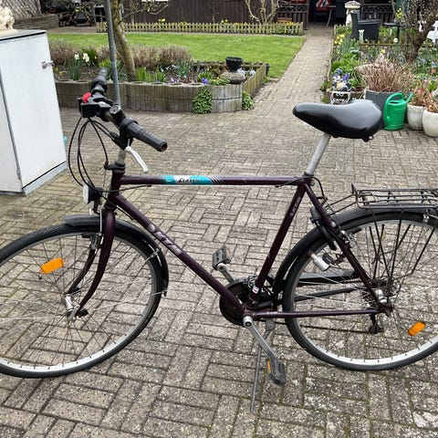 Nielsen cykel med 7 gear, håndbremse, fodbremse, lås, støtteben, ringeklokke, reflekser i hjul