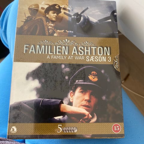 Familien Ashton A Family at War sæson 1 dvd-boks med 4 discs. Tv-serie om familien Ashton under Anden Verdenskrig. Boksen indeholder hele første sæson med flere afsnit fordelt på de 4 dvd’er. Aldersmærket 15 år (15+). Tekst og lyd er efter standard dvd-format; nærmere oplysninger om sprog og undertekster fremgår af bagsiden af boksen.