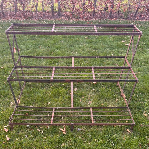 hjørnereol - patineret metal - siderne: 46 cm. - bredde 65 cm. - højde 92 cm. - hel og stabil