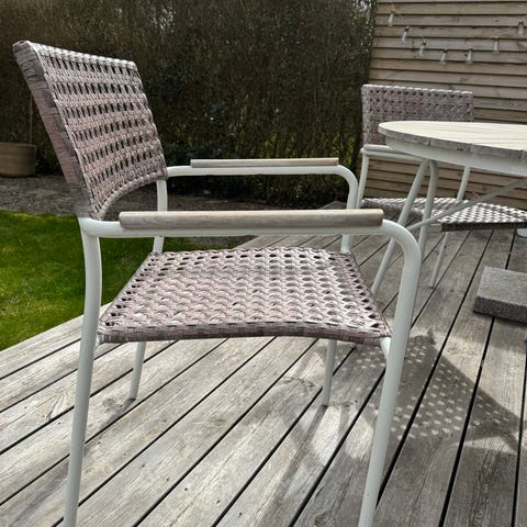 Ekstra stol, som ses i baggrunden kan medfølge, men har en anden udformning