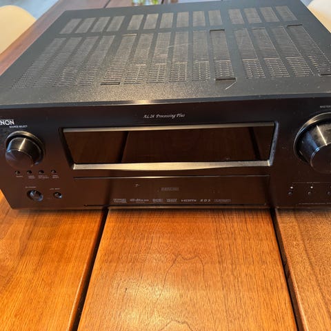 Denon AVR-1604 surround receiver i sølvfarvet kabinet. AV-receiveren understøtter flerkanals surroundlyd med blandt andet Dolby Digital og DTS. På fronten findes volumen- og inputvælger samt betjeningsknapper og display med RDS/RadioTEXT-information. På bagsiden er der flere analoge lyd- og videoin-/udgange til tilslutning af fx dvd-afspiller, tv, cd-afspiller og andre kilder samt terminaler til højttalere. Velegnet som central enhed i et hjemmebiograf- eller stereoanlæg, hvor der ønskes styring af flere lyd- og videokilder gennem én receiver.