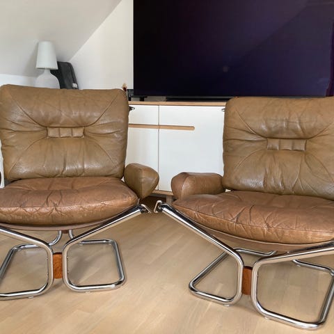 Lænestole i lyseblåt skind med vippe funktion og god komfort