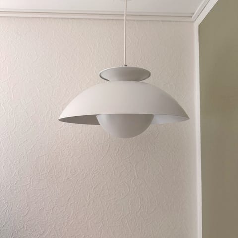 Selling 2 modern ceiling lamps, perfect for creating a clean and stylish look in your home. They feature a simple design with a white diffuser, providing soft and pleasant lighting.