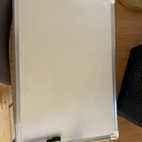 Hvid whiteboard tavle i rektangulær form. Tavlen har glat, blank skriveflade egnet til brug med whiteboardtuscher. Kan anvendes i kontor, hjemmekontor, undervisningslokale eller andre rum, hvor der er behov for en tør-slette tavle til noter, planer eller præsentationer. Monteres typisk på væg.