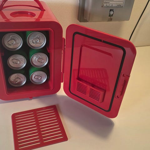 Mini køleskab, Adler, nypris 449,-. Står som nyt uden brugsspor. Spejl på fronten, hylde det kan tages ud for stort rum , 4 liter.