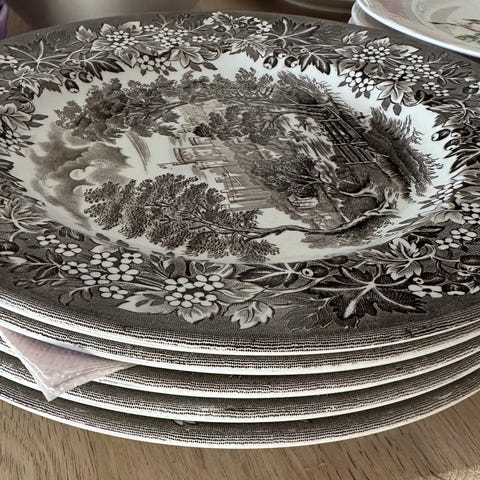 6 flotte frokosttallerkner fra the freindly village med en diameter på ca 22 cm .fremstår i maget fin stand .samler pris 450 kr afhentes i 6771 Gredstedbro eller sendes mod betaling af porto