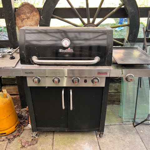 Char-Broil gasgrill med 4 hovedbrændere og integreret sidebrænder. Grillen har låg og front i metal samt store sideborde i rustfrit stål. Underskab med låger giver plads til opbevaring af gasflaske og grilltilbehør. Monteret på hjul for nem flytning. Velegnet til udendørs madlavning på terrasse eller i have.