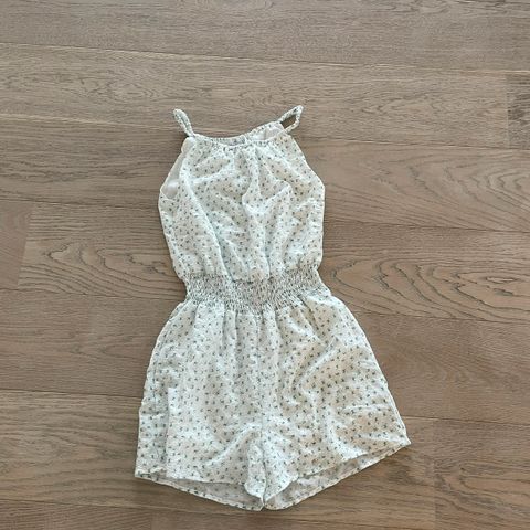 Super flot lysegråt broderi anglaise sæt fra Next sælges i en str 140. Toppen har en indbygget ekstra top og bukserne har indbygget shorts, men er så gennemsigtige fra det nederste af lårene og ned..