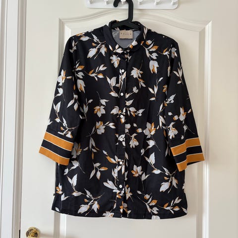 Lyserød skjorte med print fra Zoey - str M (ZOEY ER ET PLUS-SIZE-MÆRKE). Aldrig brugt med fine detaljer, bl.a. små “perler” ved ærmerne.