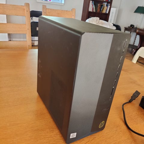 HP stationær computer med bundkort, strømforsyning, cpu, cpukøler, grafikkort, windows 10 licens