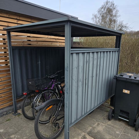 Cykelopbevaring til sikker opbevaring af familiens cykler. Det kompakte cykelskur med et moderne design og robuste, holdbare materialer holder dine cykler sikre og tørre. Passer ind i de fleste haver, gårdhaver m.m. Indbyggede cykelholdere til fire standardcykler. PS: Vi anbefaler, at du måler dine cykler for at sikre, at de kan være der, da cykler findes i mange former og størrelser.