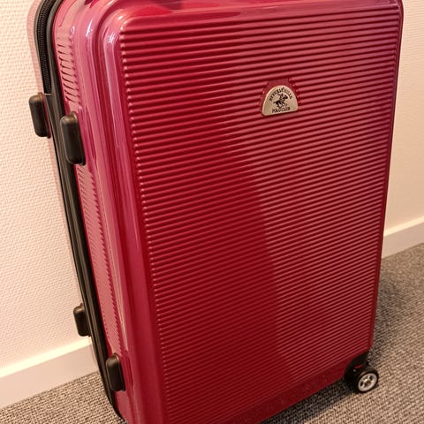 Stor lyserød kuffert i silikone - Højde 78 cm. Mærke: First Polo's.