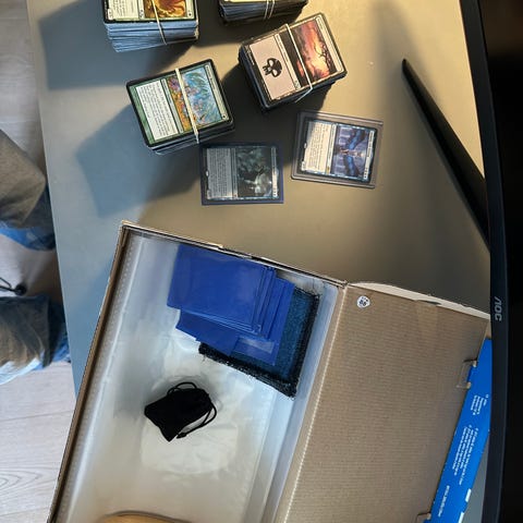 Sælger en kasse med 5-6 kilo blandede Magic: The Gathering kort. Kassen indeholder et større antal common og uncommon fra mange forskellige serier - både ældre og nyere. Der er enkelte udenlandske kort iblandt. Velegnet til samlere eller til brug som ekstra kort til deckbygning og casual spil.